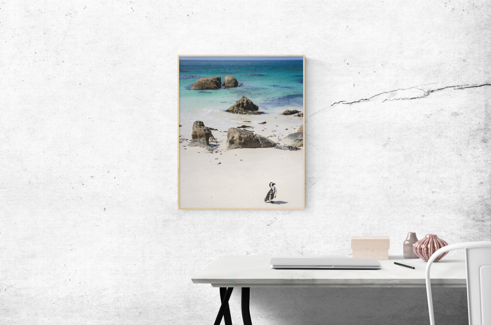 While visiting Boulders Beach in Simon’s Town, South Africa, I photographed a single African penguin standing on the sand, calmly watching the waves. It seemed completely at ease, surrounded by the soft sounds of the ocean and the chatter of the colony nearby.