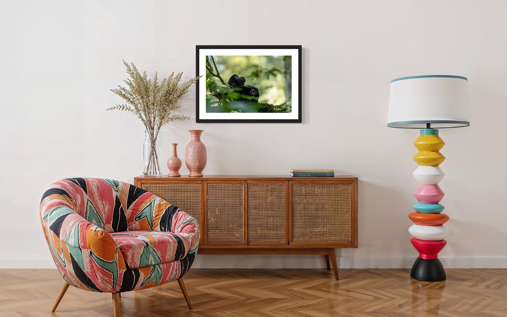 High up in the dense green canopy, I watched a juvenile mountain gorilla sit quietly, its dark eyes fixed on something far beyond the treetops. There was a calm stillness in that moment — a rare, intimate glimpse into the life of a species that is critically endangered.