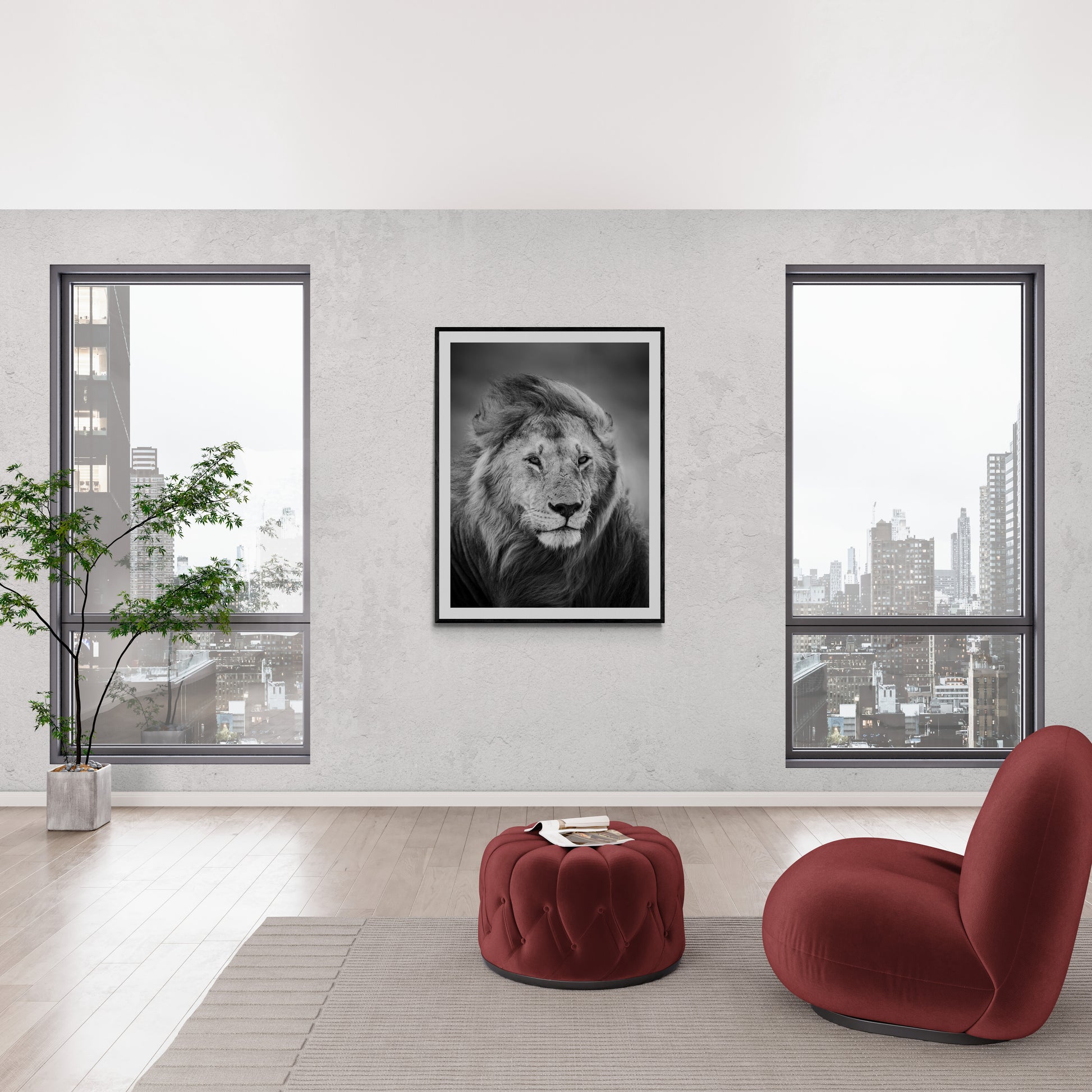 We were driving out of Maasai Mara National Reserve when a lion emerged from a lone bush, his juvenile son close behind. I raised my camera just as the male stepped into the open, his powerful frame filling the viewfinder.